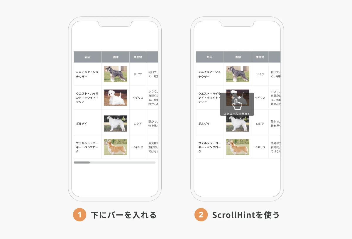 スマホで横スクロールにする場合は、スクロールできることを効果的に示そう